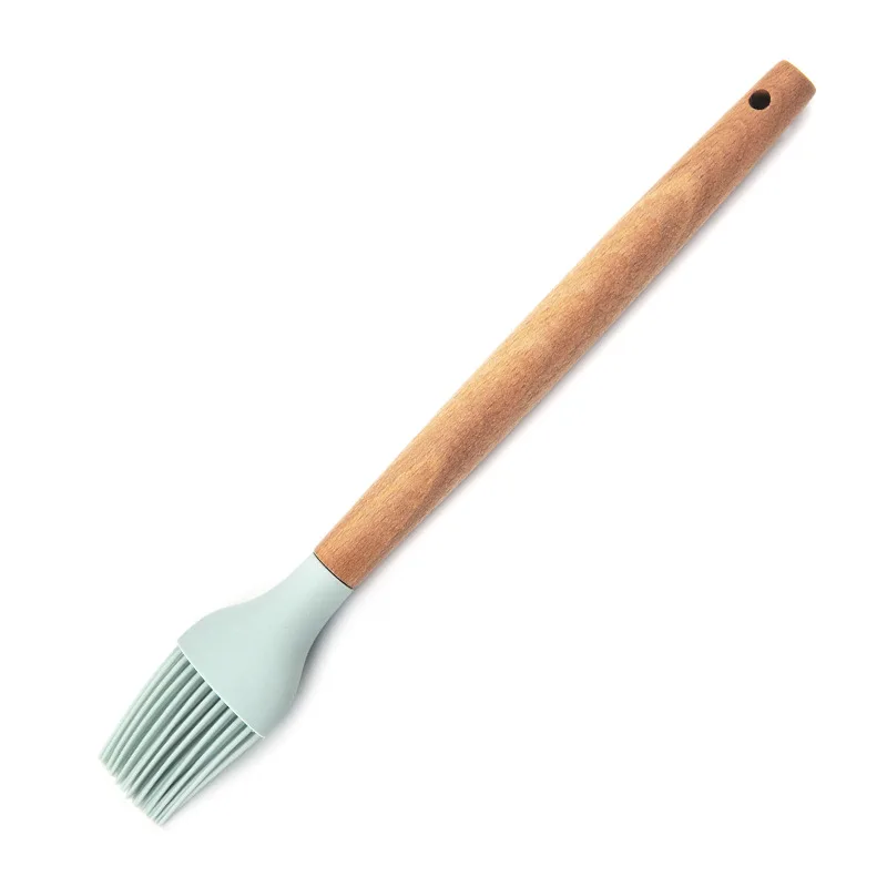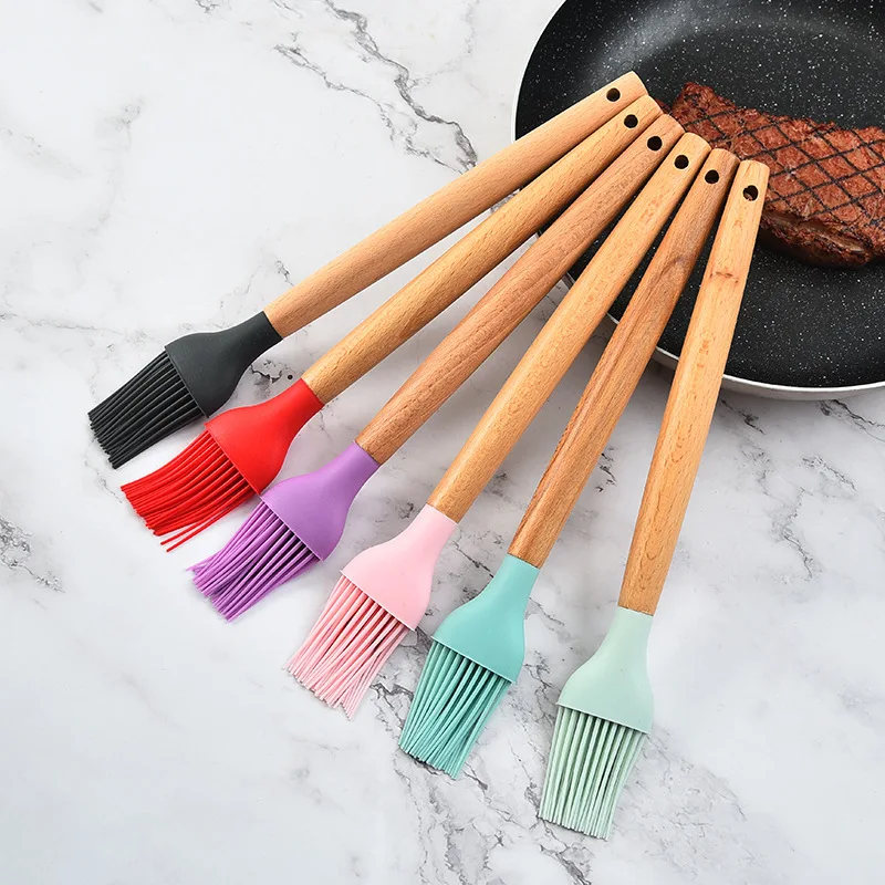 1PC Silicone BBQ Oil Basting Brush with Wood Handle Cake Bread Cream Cooking Brushes Baking Barbecue Kitchen Accessories