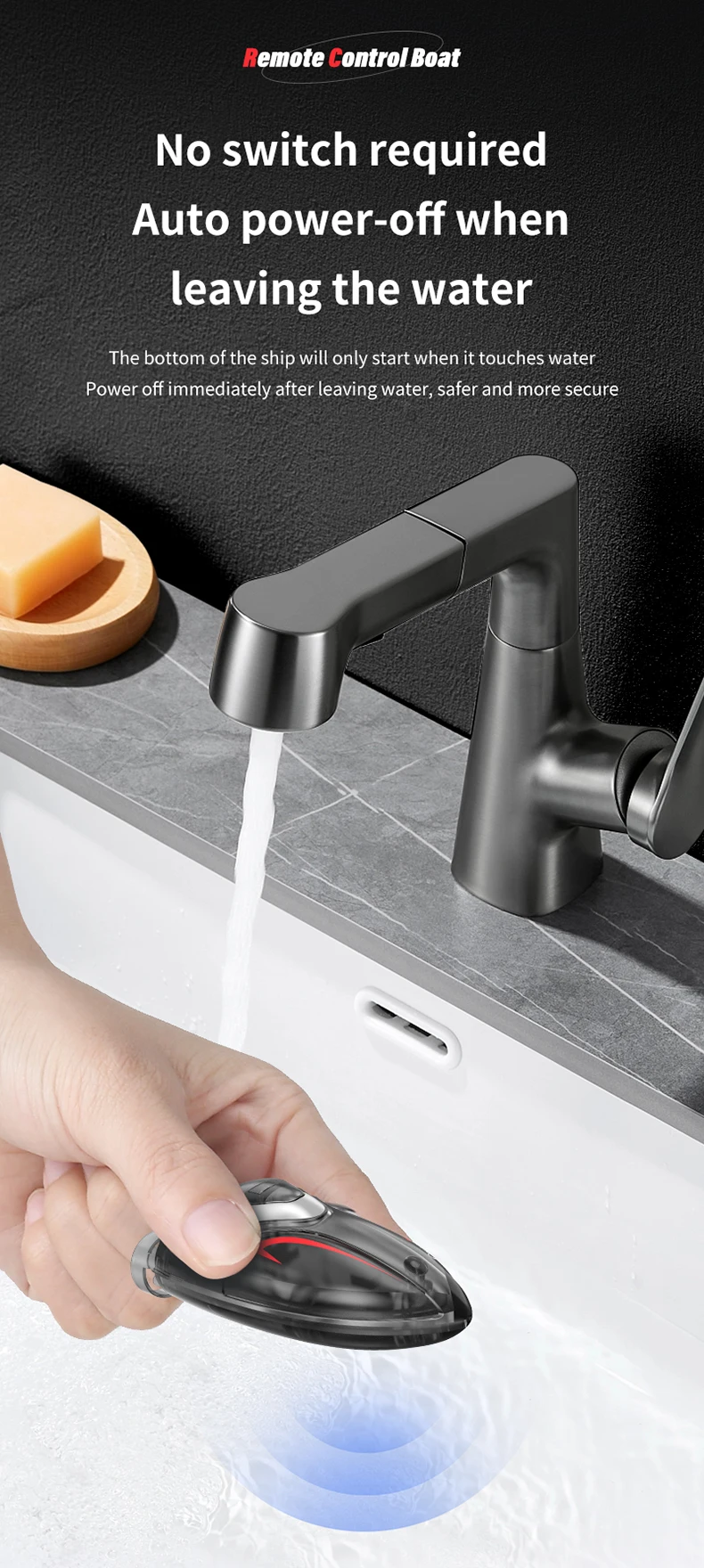 (2) Forward and backward turn left and right to sail, when there is no remote control operation, the ship's propeller stops rotating, and the speedboat will keep hovering on the water surface.