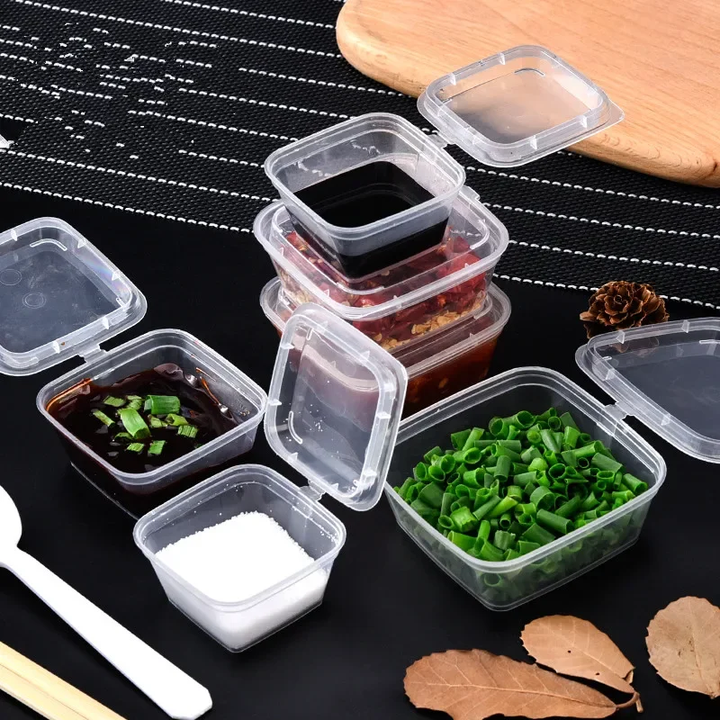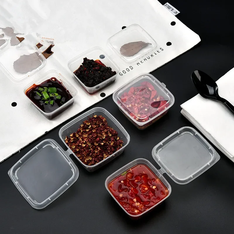 50Pcs With Lids Kitchen Organizer Disposable Sauce Pot Food Small Sauce Container Box Plastic Clear Chutney Chili Sauce Cups