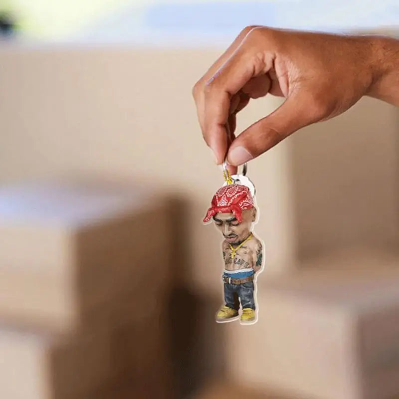 Car RearView Mirror 2D Pendant Car Interior Hanging Ornament Hip Hop Funny Rapper Mini Acrylic Decoration Room Office Doll Decor