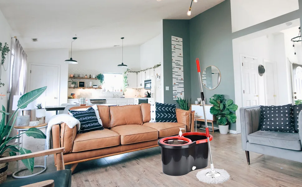 - Our spinning mop bucket with plug, convenient drainage, and a non-slip mat at the bottom of the bucket. And the mop handle with hanging holes, which do not take up space.