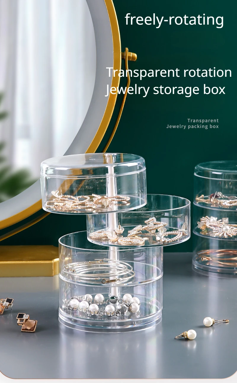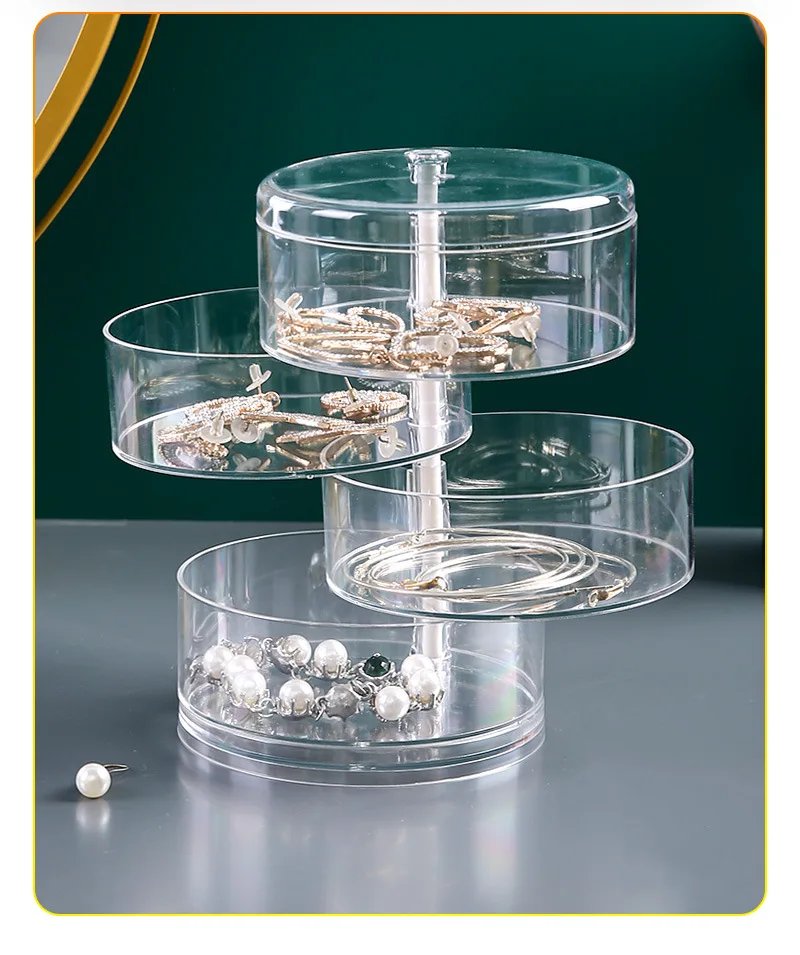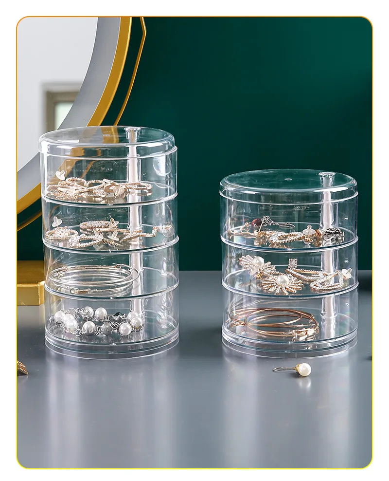 Rotating Jewelry Storage Box Multi-Layer Makeup Storage Rack Bracelet Earring Round Plastic Organizer Boxes Holder Display Rack