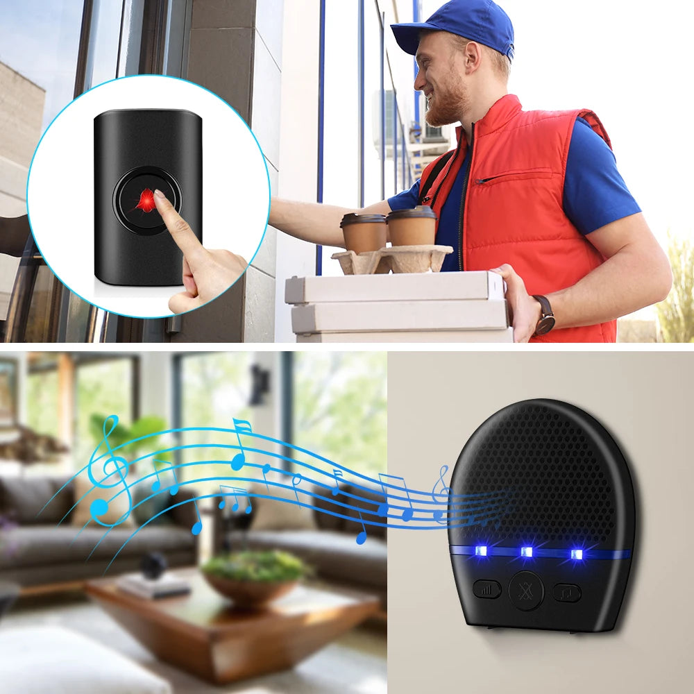 The doorbell has 38 songs, millions of learning codes and will not repeat the code, 4-speed volume adjustment and silence functions, blue LED flash, power-off memory, song volume reset etc.