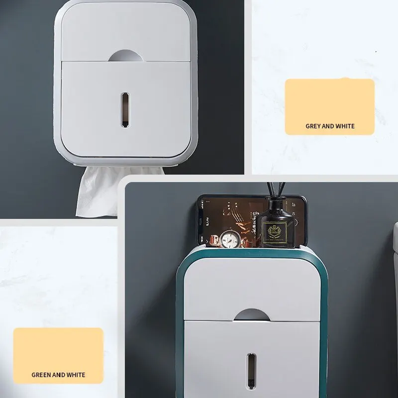 Tissue Box Wall-mounted Waterproof Toilet Paper Organizer Box Multi-function Toilet Paper Holder Box Bathroom Storage Products