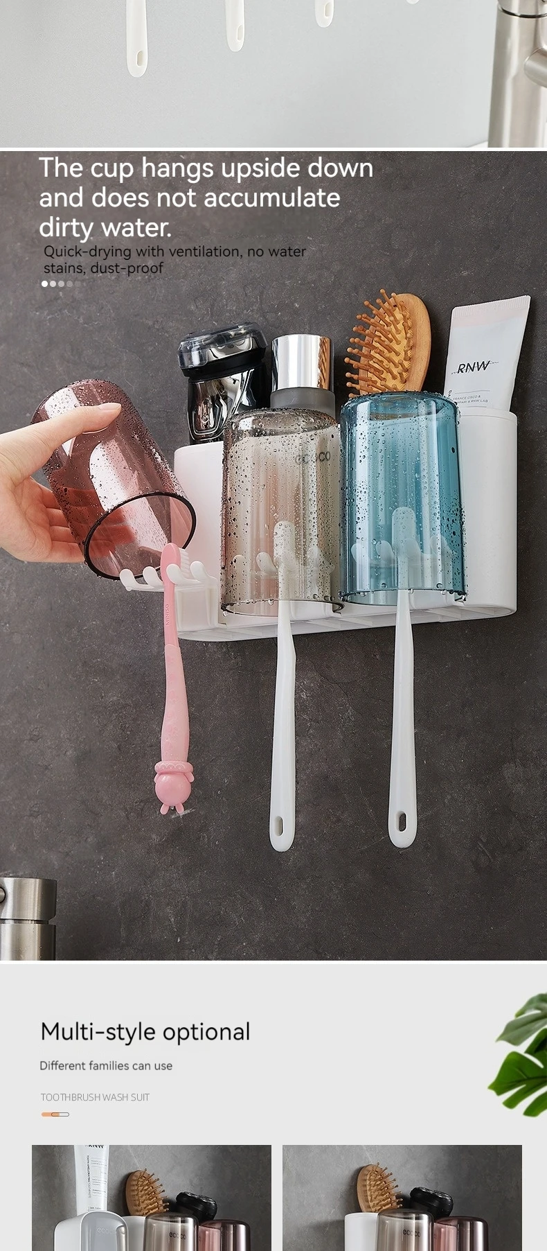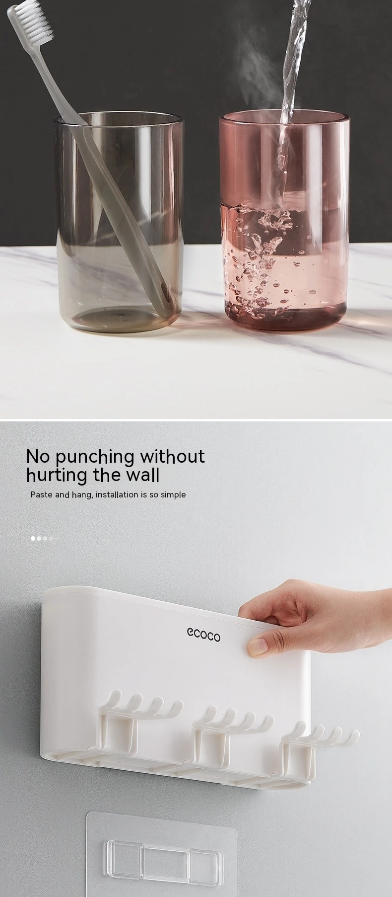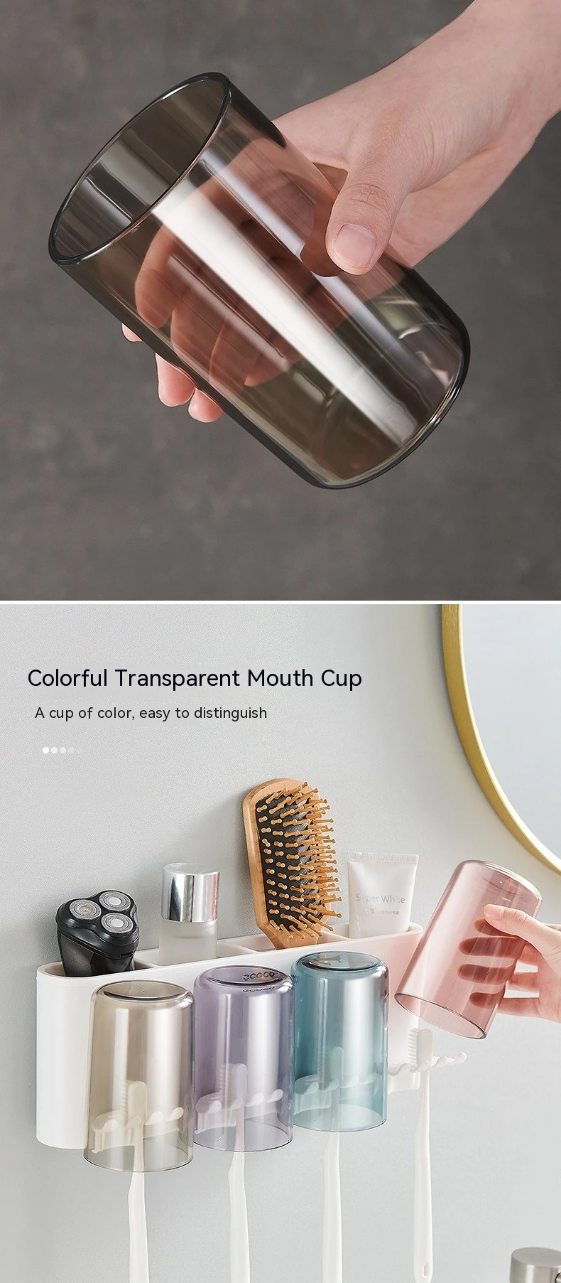 Wall-Mounted Toothbrush Holder with Transparent Gargle Cup Storage Rack Bathroom Punch-Free Toothpaste Holder Storage Set
