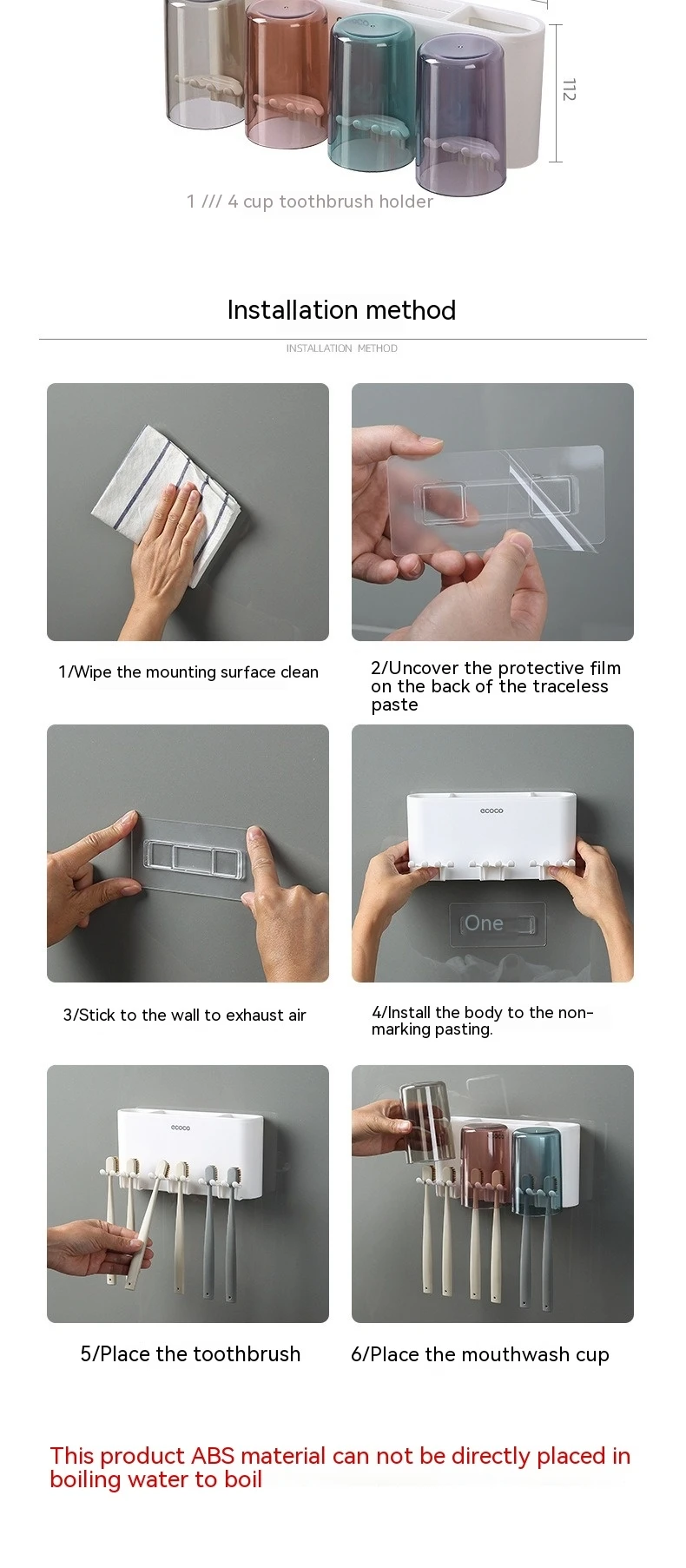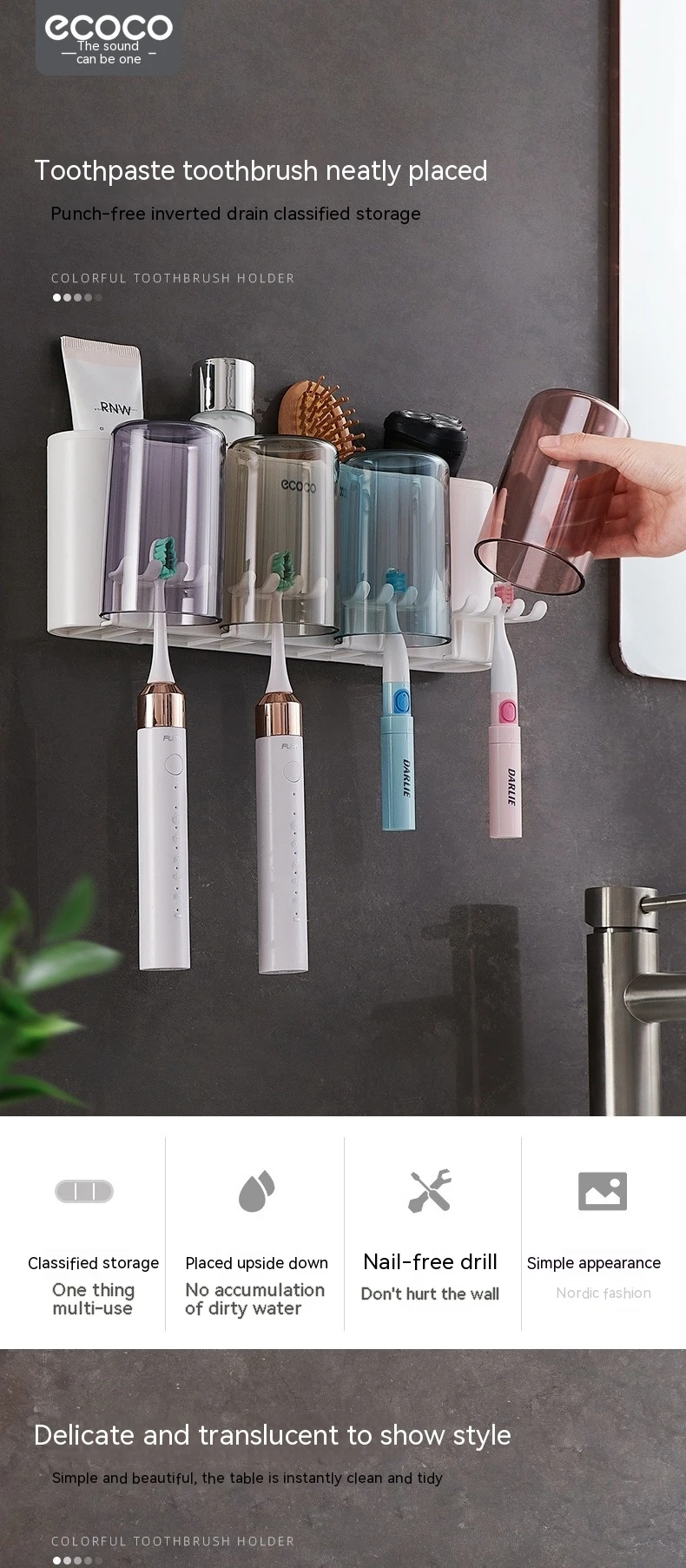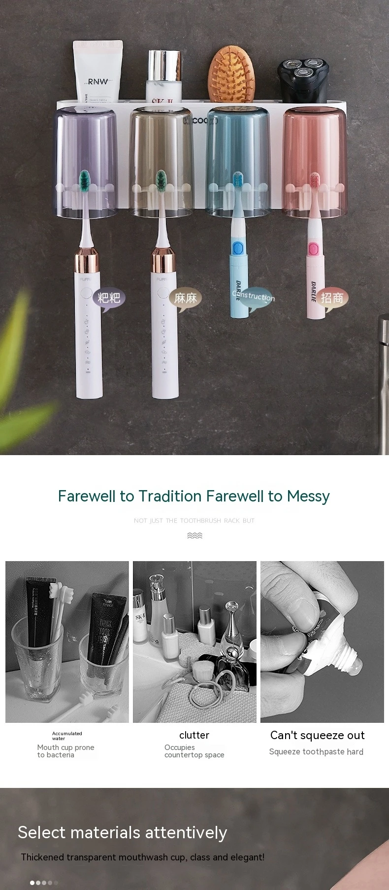 Wall-Mounted Toothbrush Holder with Transparent Gargle Cup Storage Rack Bathroom Punch-Free Toothpaste Holder Storage Set